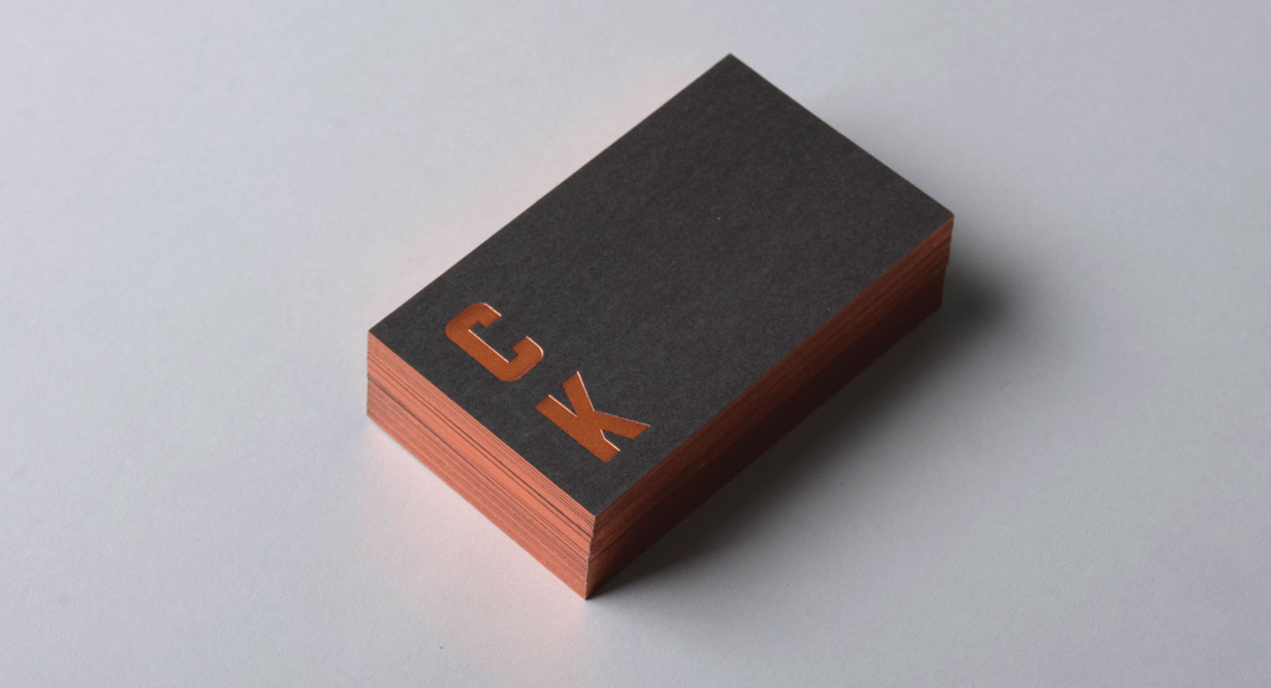 A simplistic business card design with a slick bronze foiling.