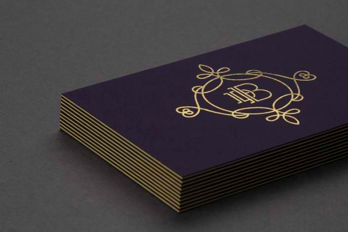 A professionally design business card with its letters hot stamped with gold foil.